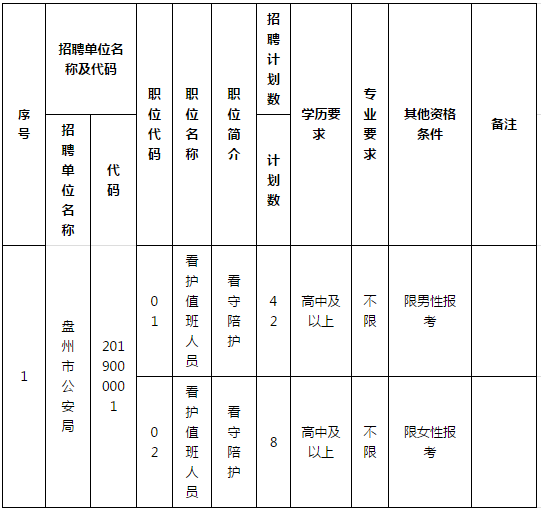 盤(pán)州市公安局2019年面向社會(huì)公開(kāi)招聘留置場(chǎng)所編外合同制看護(hù)人員計(jì)劃職位一覽表